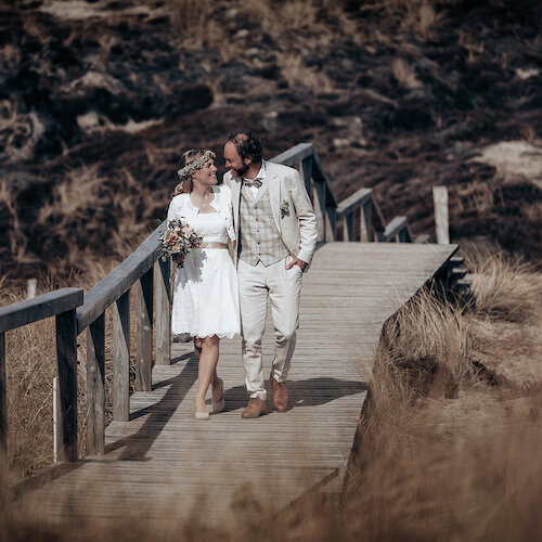 Also, schön wars das Shooting. Nach der standesamtlichen Trauung. Treffpunkt Kampen an der Sturmhaube und auf zum Quermarkenfeuer. Tolles Panorama über die weiten XXL Dünen die den Sylter Norden so einmalig definieren.